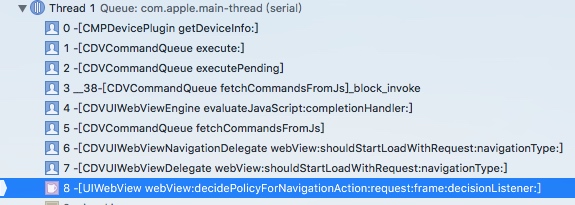 @property (nonatomic, strong, readwrite) CDVUIWebViewNavigationDelegate* navWebViewDelegate;初始化从initWithFrame:方法开始,它创建了一个UIWebView,并赋值给了engineWebView,然后在插件初始化方法pluginInitialize中初始化UIWebView的代理和配置。